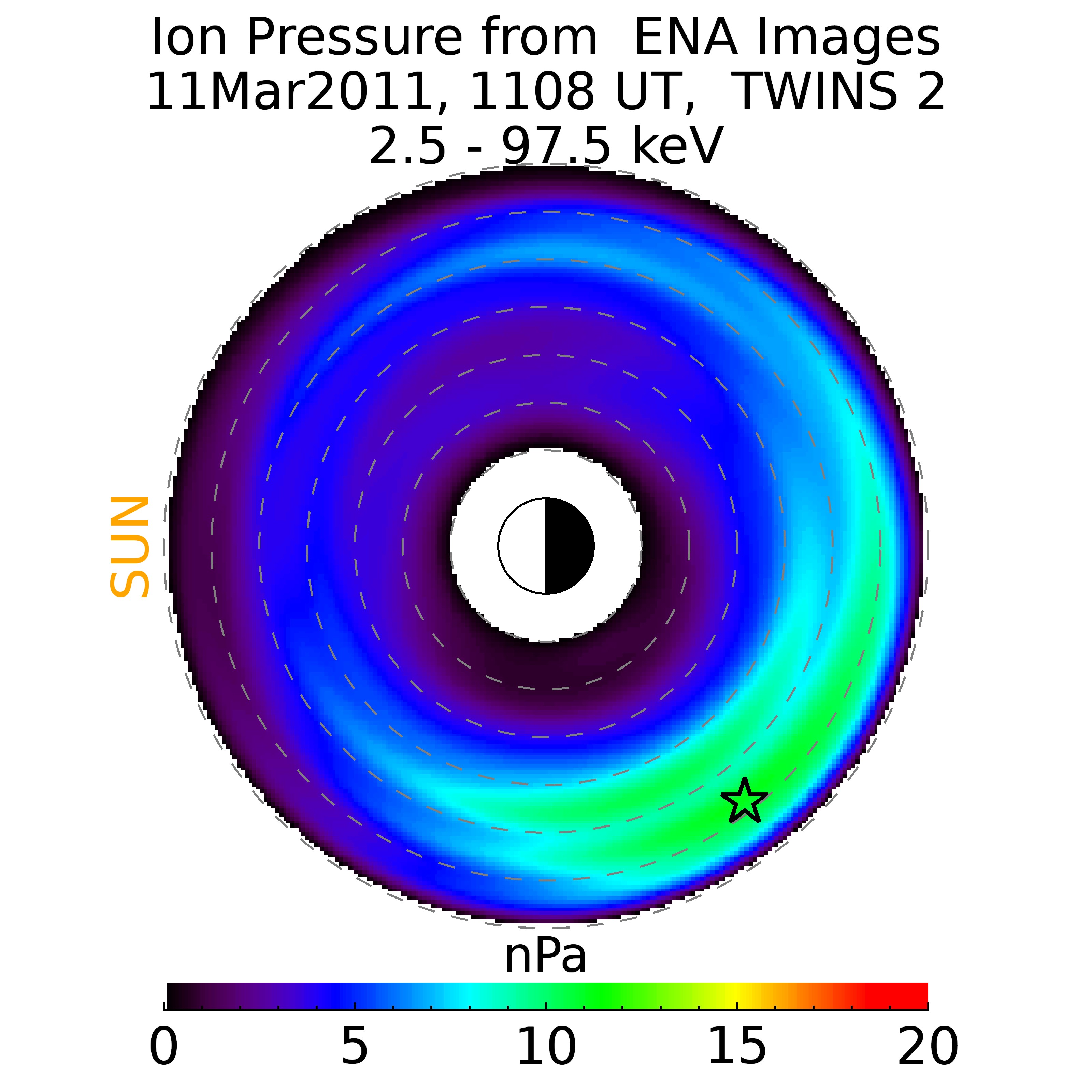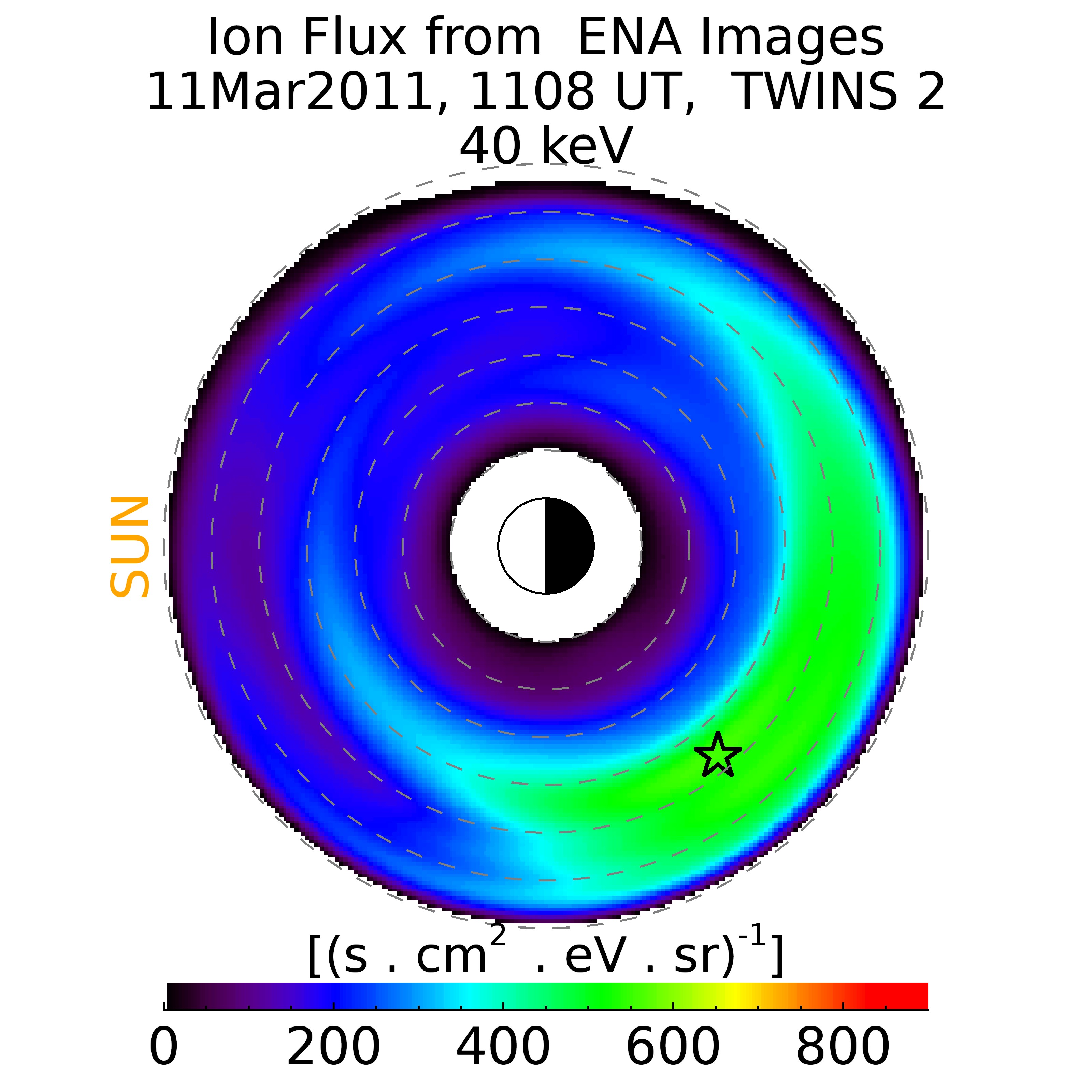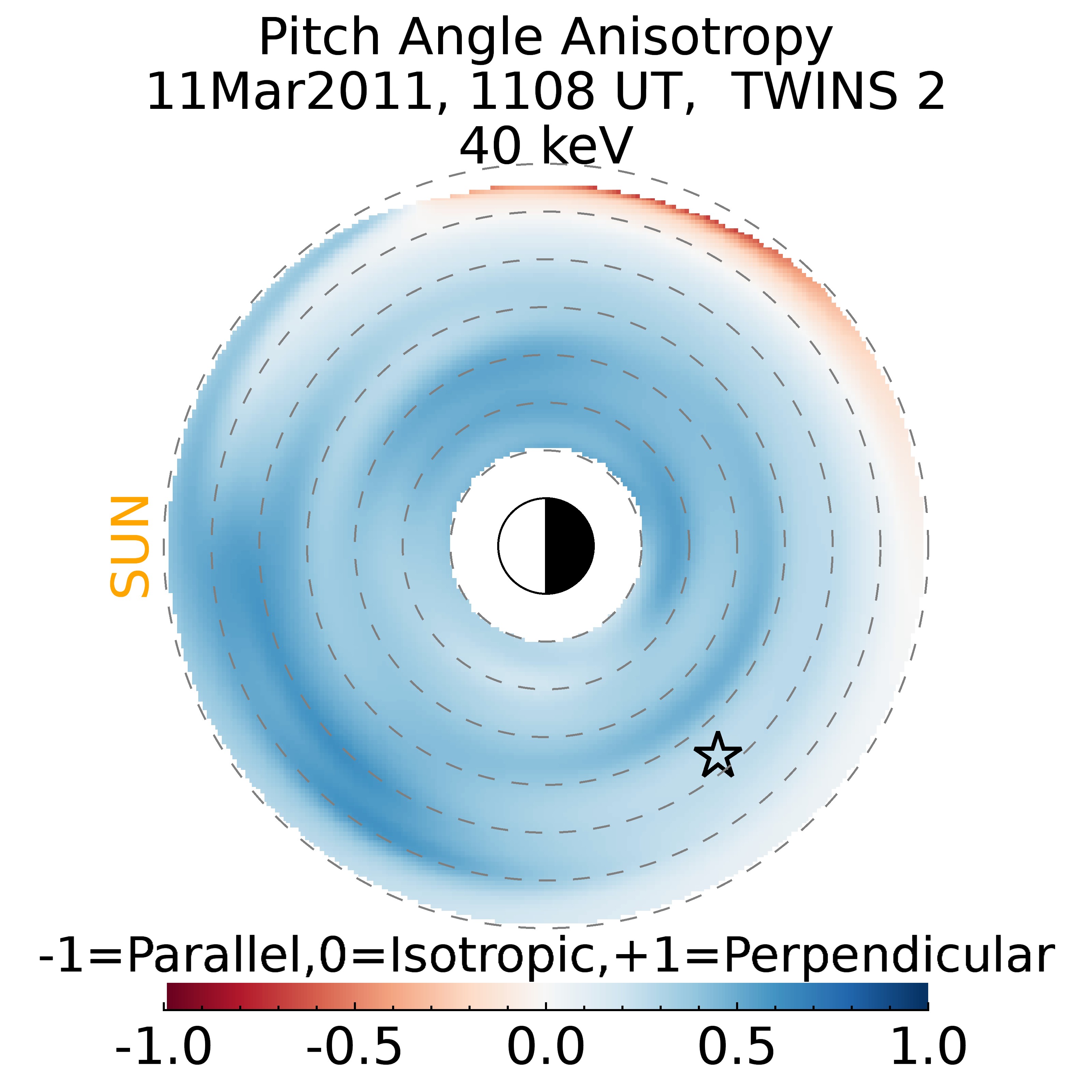 | TWINS ENA Images | Inverted H+ Flux and Pitch-Angle Distribution | ||