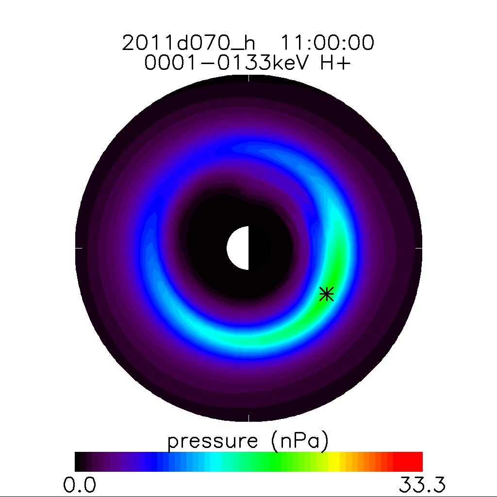 | Inverted H+ Equatorial Pressure and Pitch-Angle Anistropy | Inverted H+ Energy and Pitch-Angle Distribution at Pressure Peak | ||