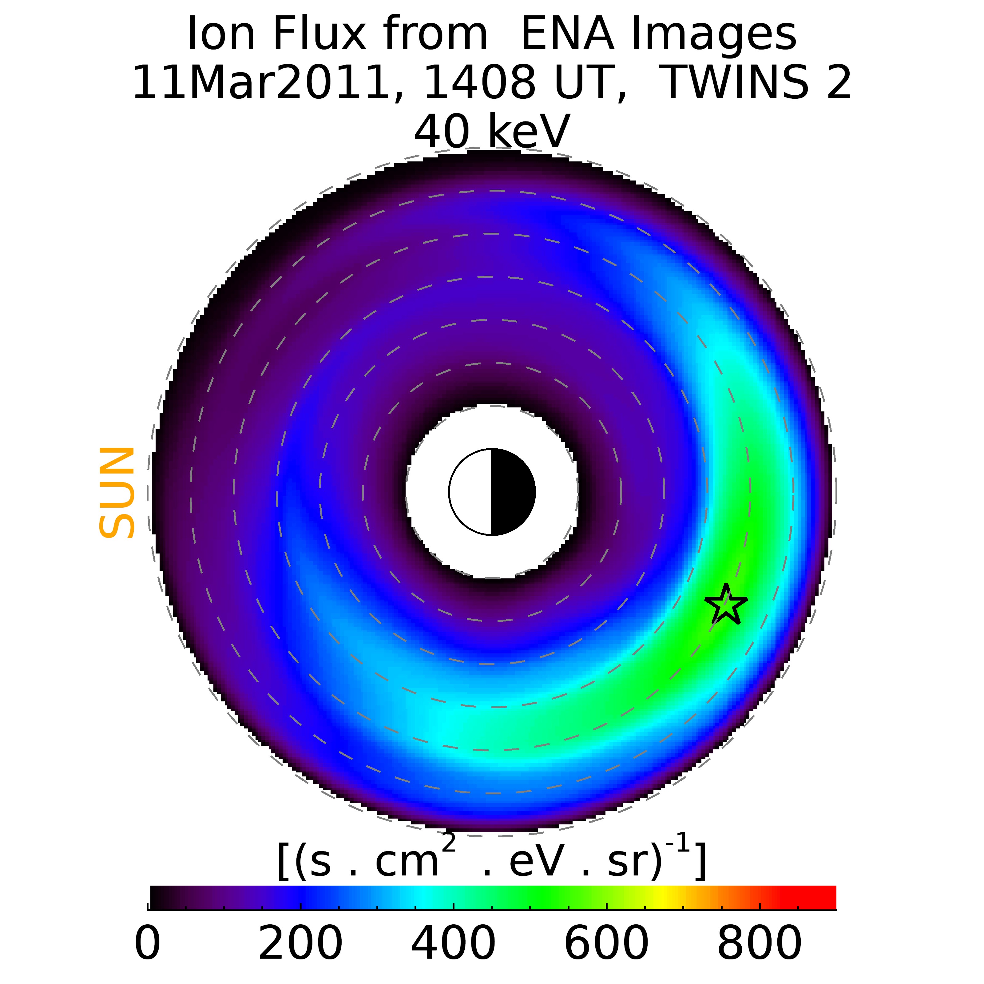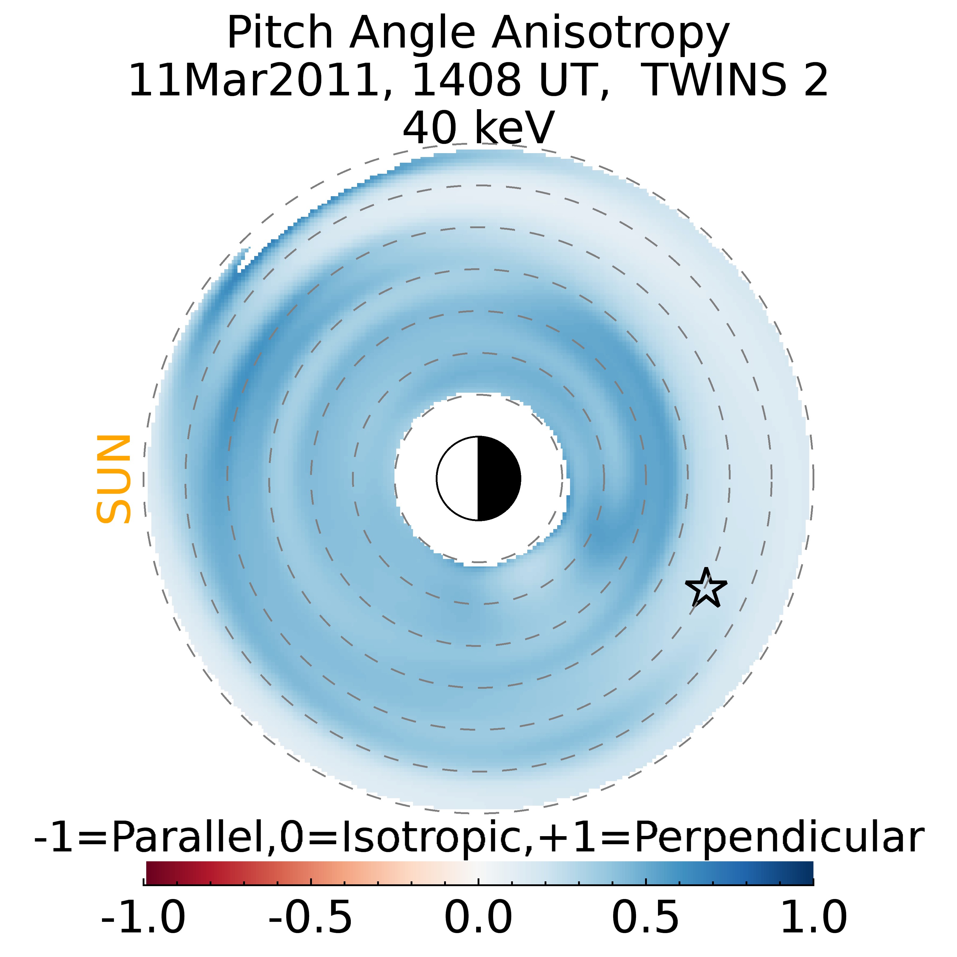 | TWINS ENA Images | Inverted H+ Flux and Pitch-Angle Distribution | ||