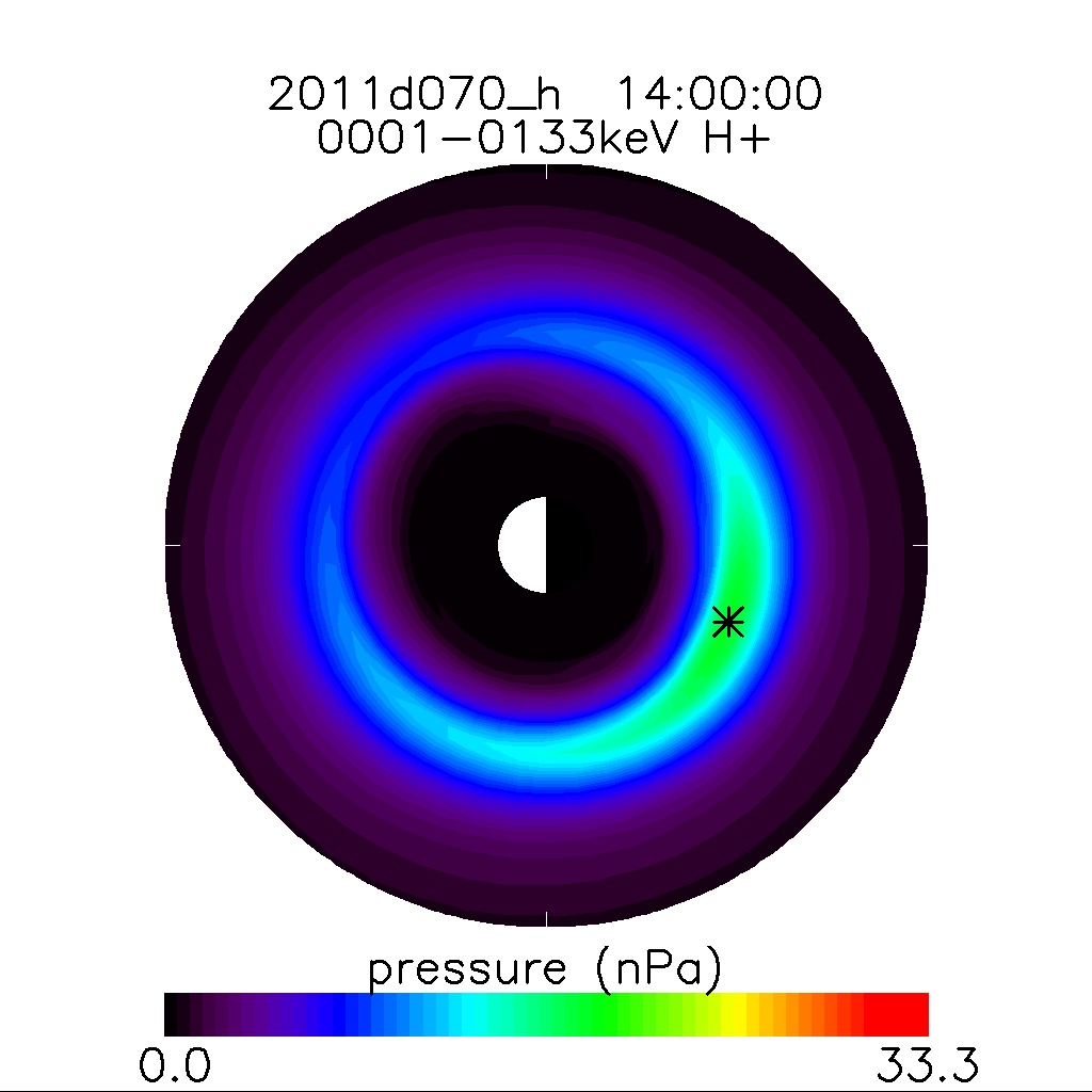 | Inverted H+ Equatorial Pressure and Pitch-Angle Anistropy | Inverted H+ Energy and Pitch-Angle Distribution at Pressure Peak | ||