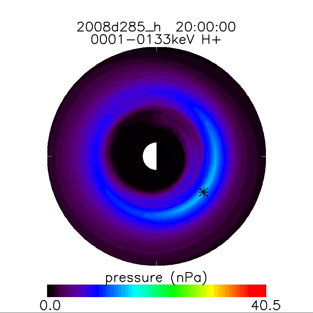 | Inverted H+ Equatorial Pressure and Pitch-Angle Anistropy | Inverted H+ Energy and Pitch-Angle Distribution at Pressure Peak | ||