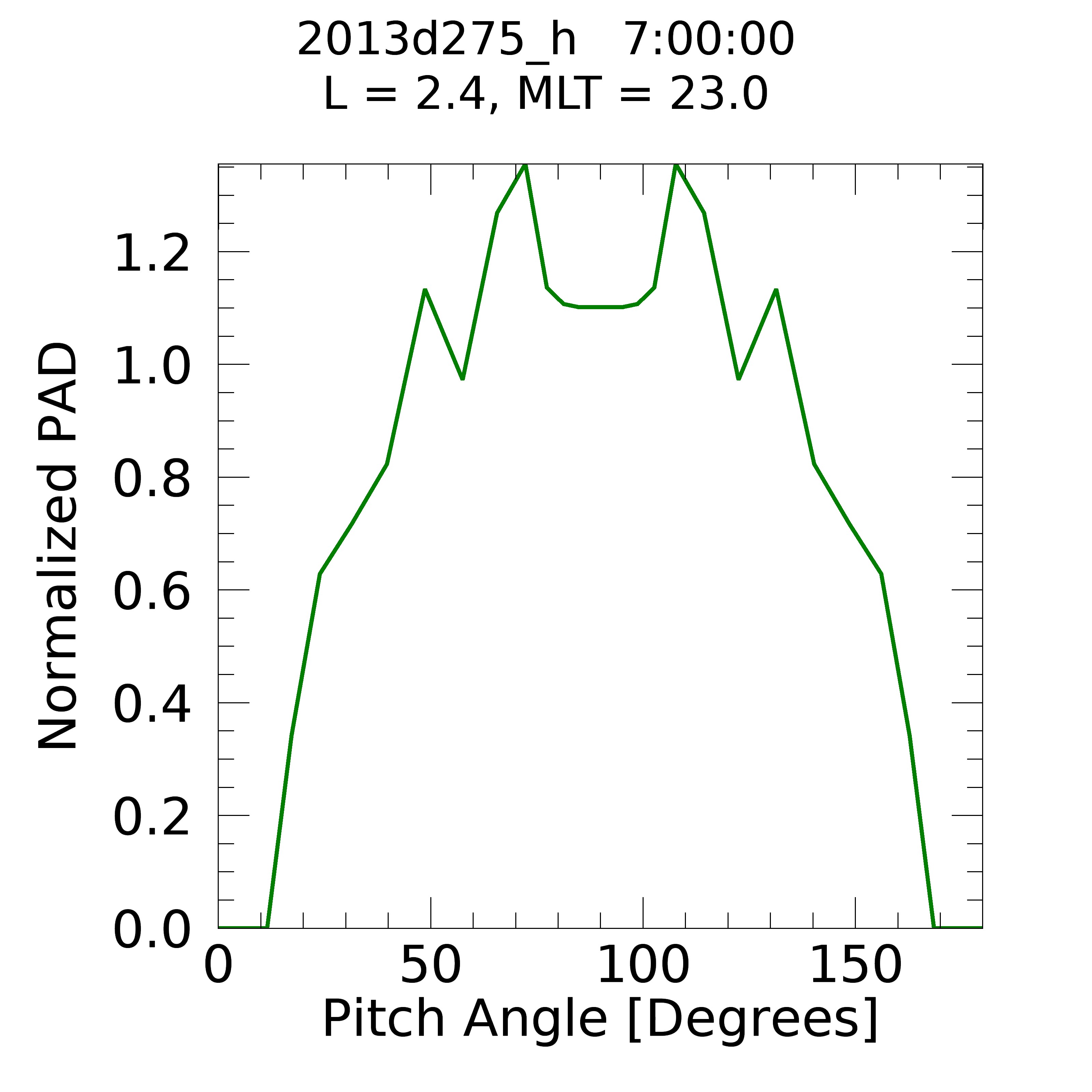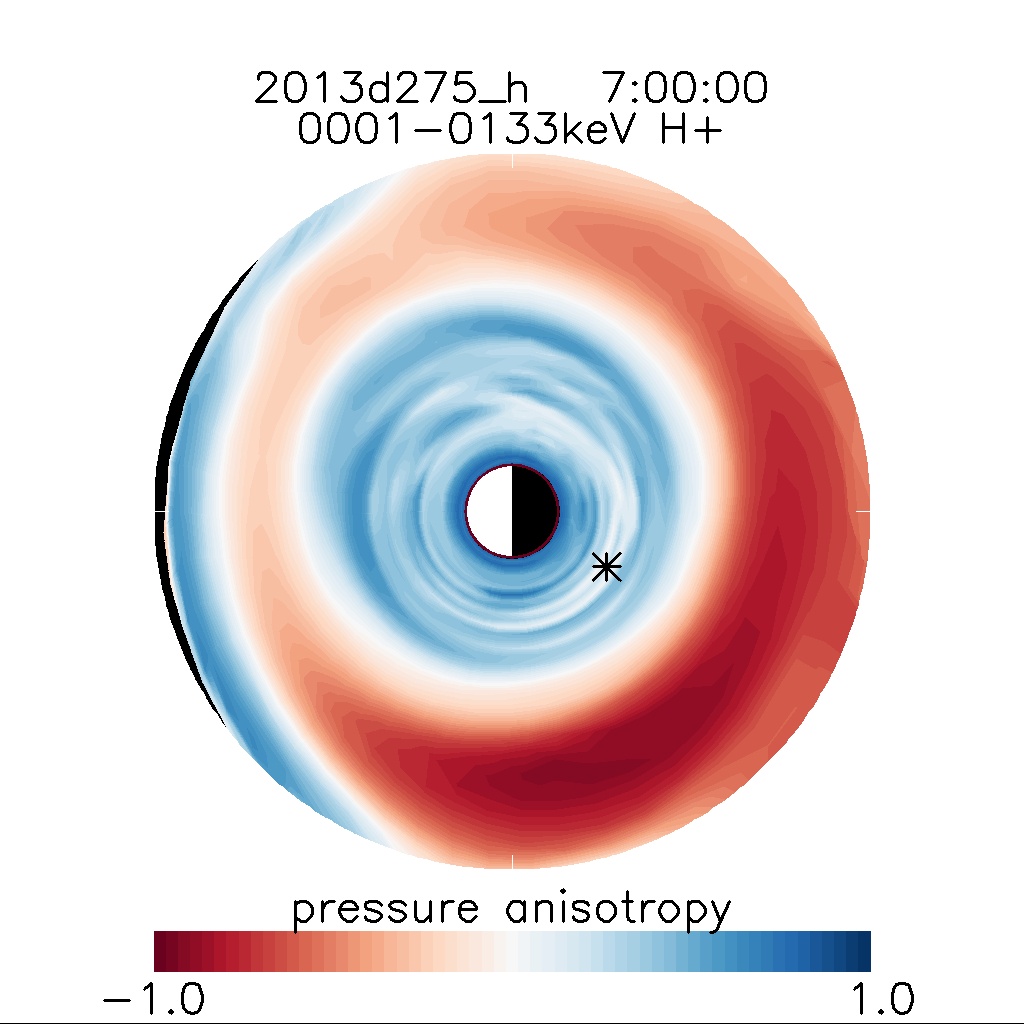 | Inverted H+ Equatorial Pressure and Pitch-Angle Anistropy | Inverted H+ Energy and Pitch-Angle Distribution at Pressure Peak | ||