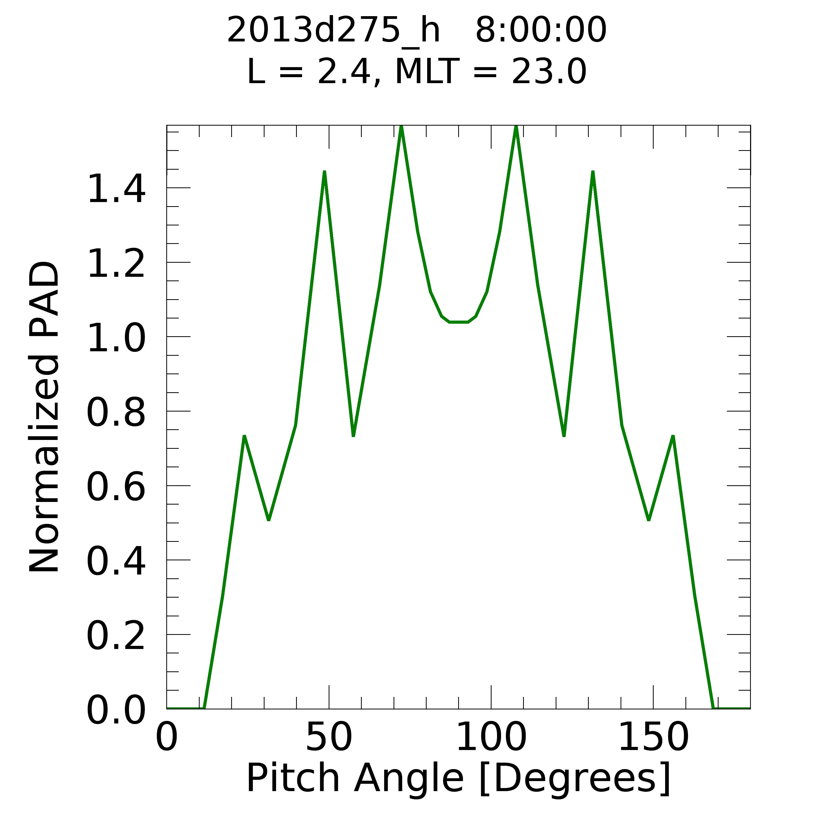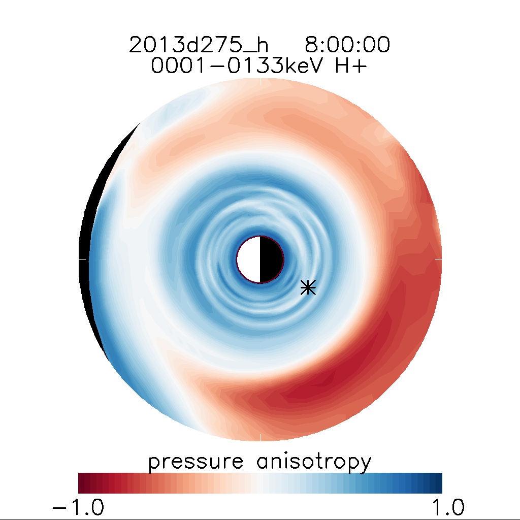 | Inverted H+ Equatorial Pressure and Pitch-Angle Anistropy | Inverted H+ Energy and Pitch-Angle Distribution at Pressure Peak | ||