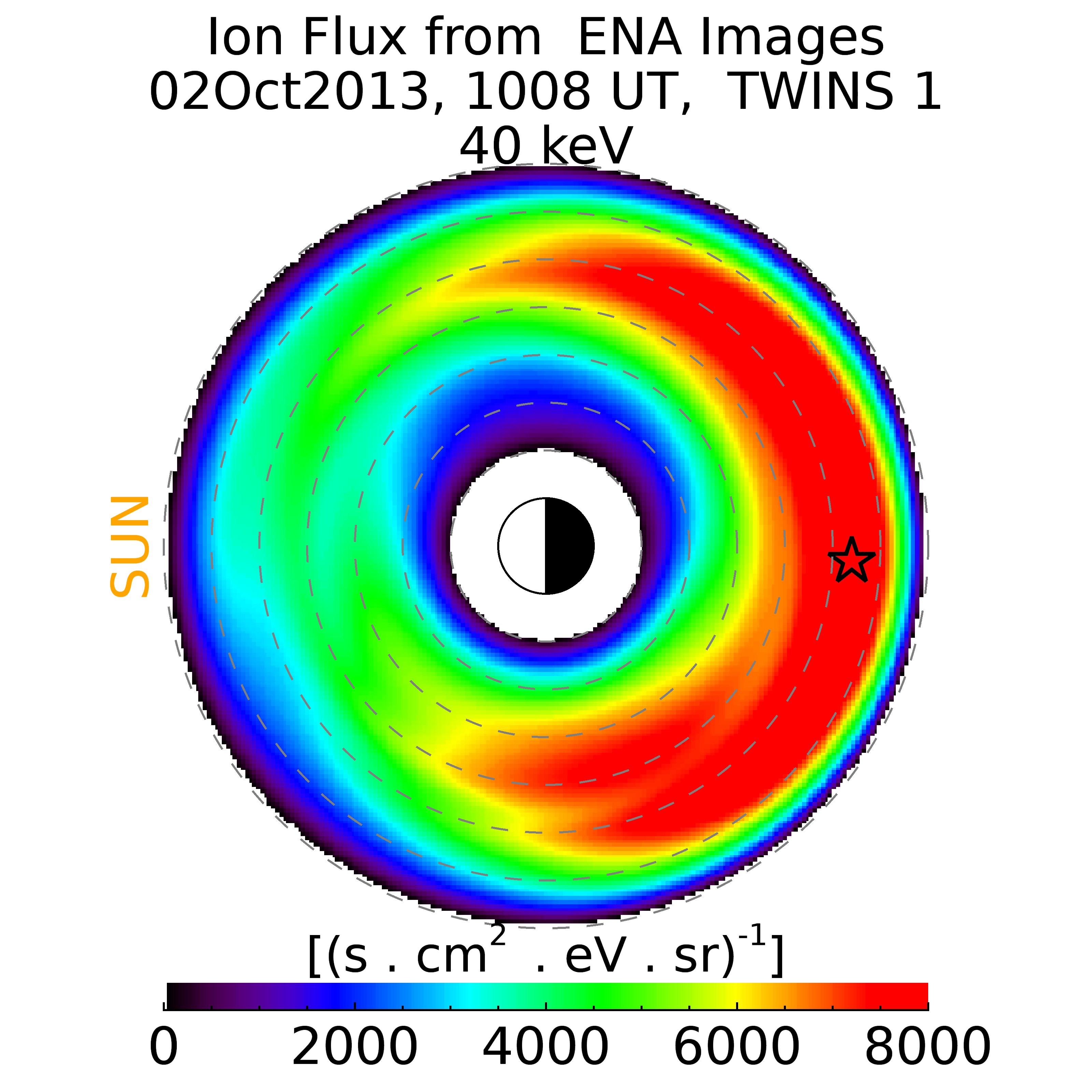 | TWINS ENA Images | Inverted H+ Flux and Pitch-Angle Distribution | ||