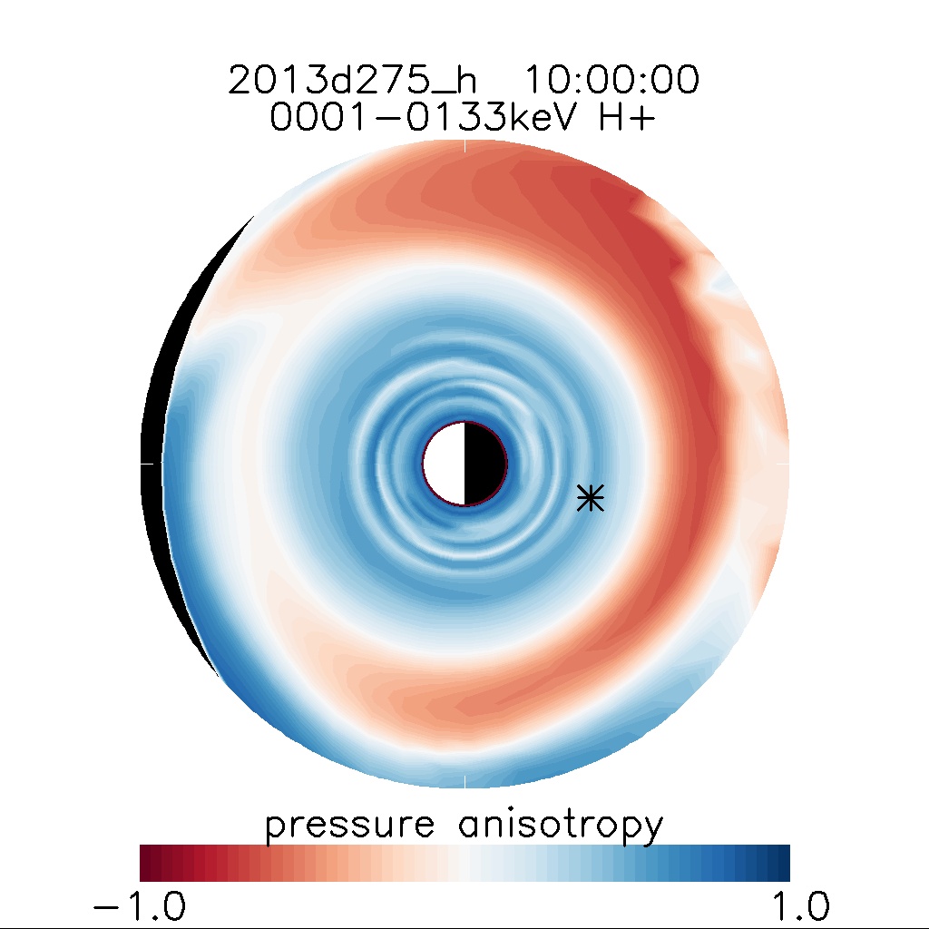| Inverted H+ Equatorial Pressure and Pitch-Angle Anistropy | Inverted H+ Energy and Pitch-Angle Distribution at Pressure Peak | ||