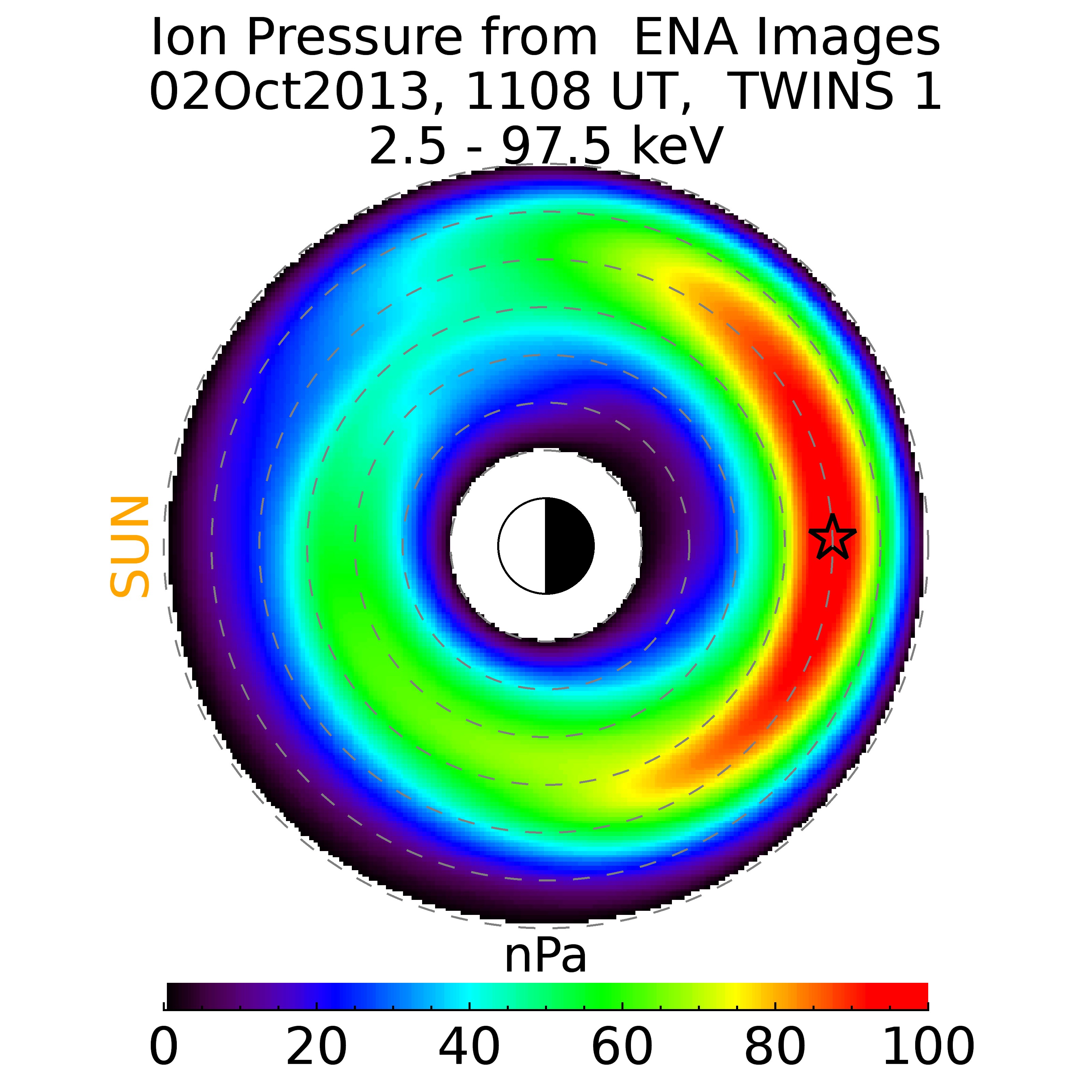 | TWINS ENA Images | Inverted H+ Flux and Pitch-Angle Distribution | ||