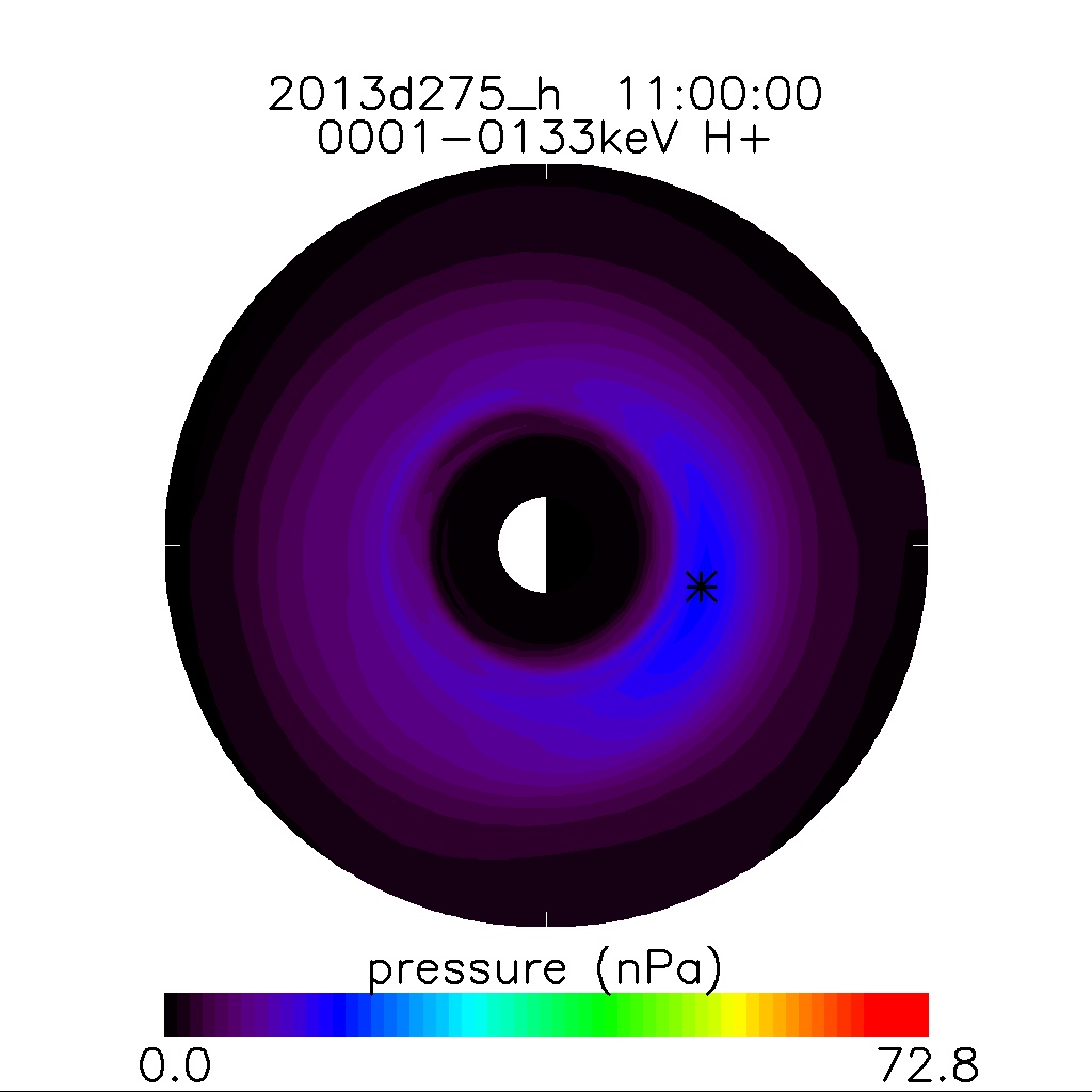 | Inverted H+ Equatorial Pressure and Pitch-Angle Anistropy | Inverted H+ Energy and Pitch-Angle Distribution at Pressure Peak | ||