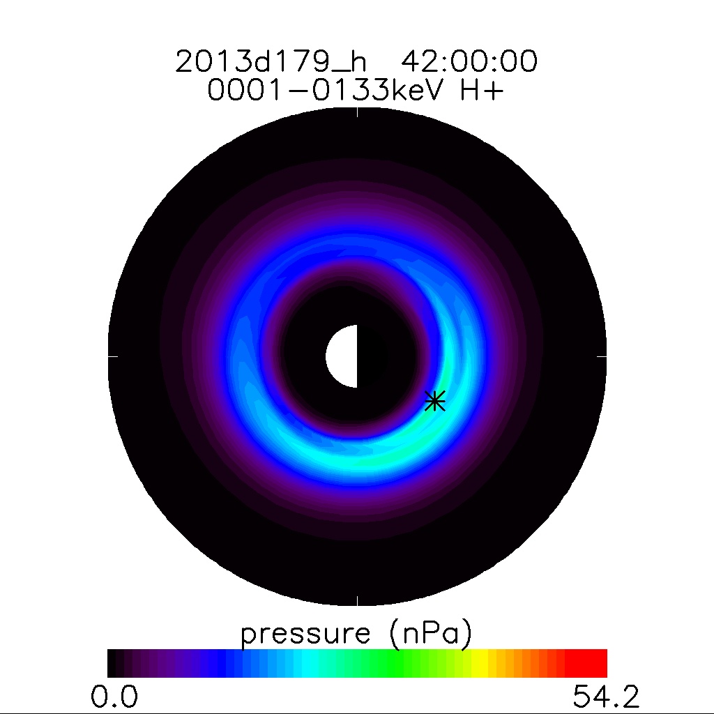 | Inverted H+ Equatorial Pressure and Pitch-Angle Anistropy | Inverted H+ Energy and Pitch-Angle Distribution at Pressure Peak | ||