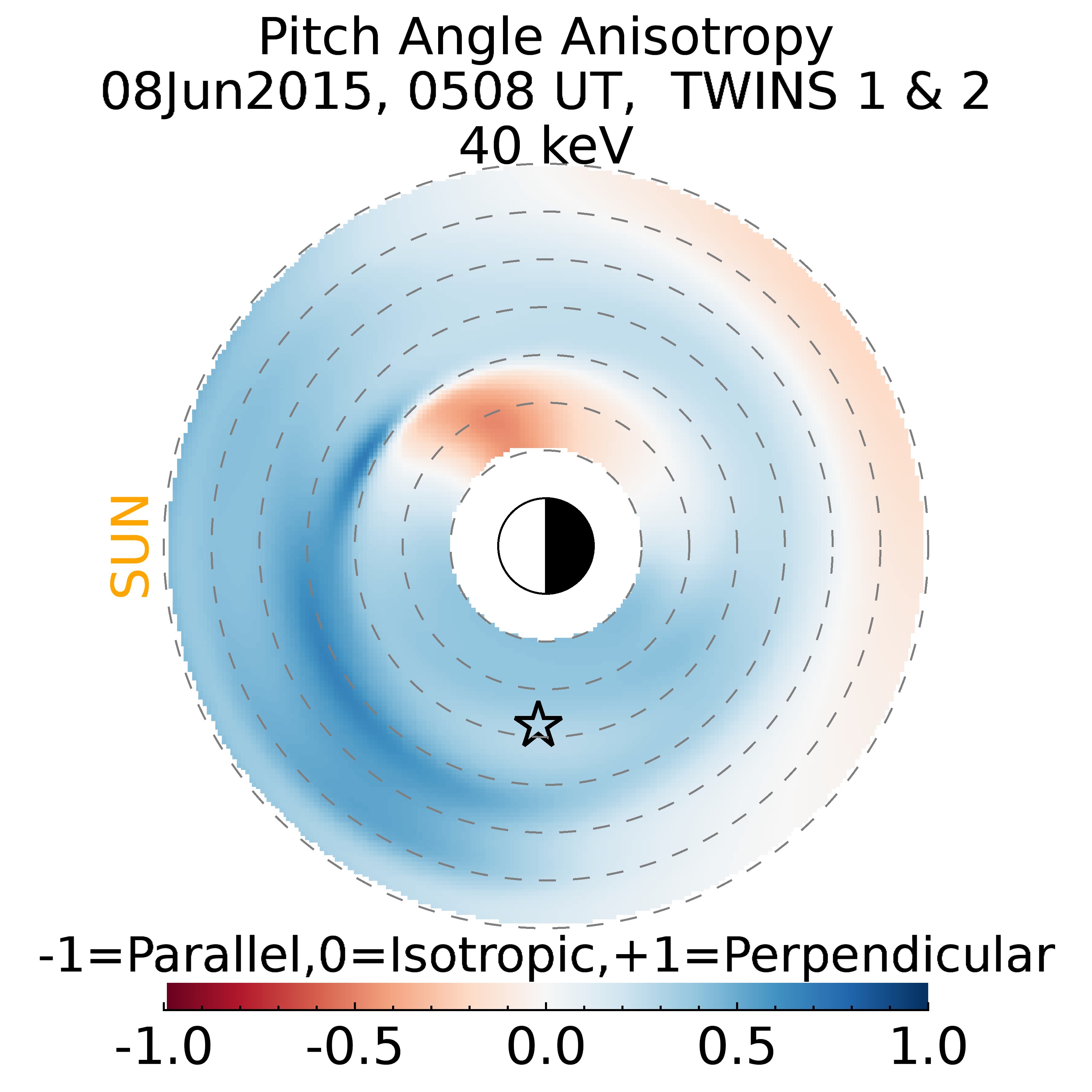 | TWINS ENA Images | Inverted H+ Flux and Pitch-Angle Distribution | ||