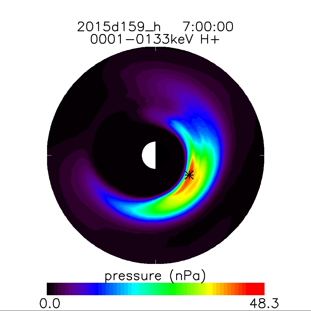 | Inverted H+ Equatorial Pressure and Pitch-Angle Anistropy | Inverted H+ Energy and Pitch-Angle Distribution at Pressure Peak | ||