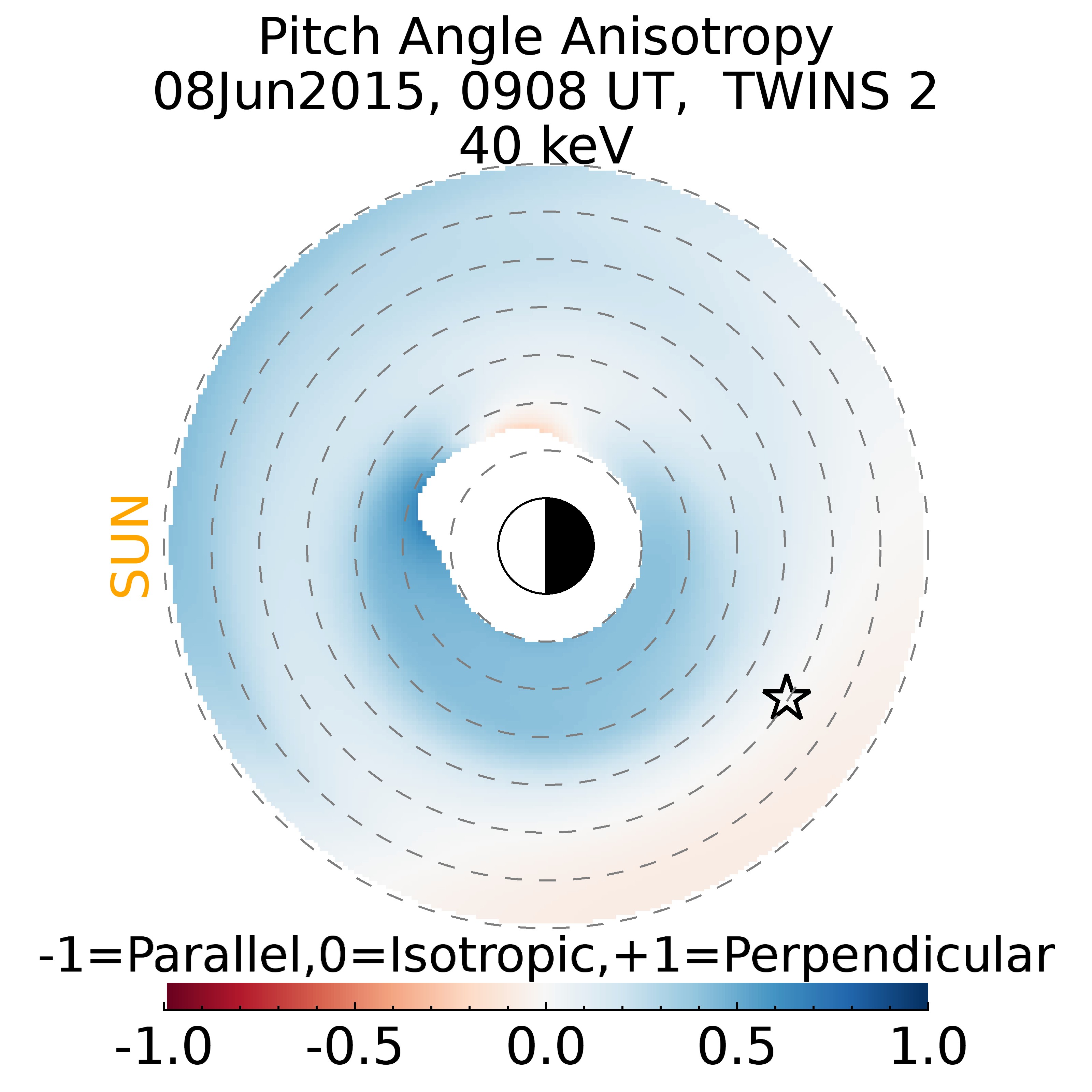 | TWINS ENA Images | Inverted H+ Flux and Pitch-Angle Distribution | ||