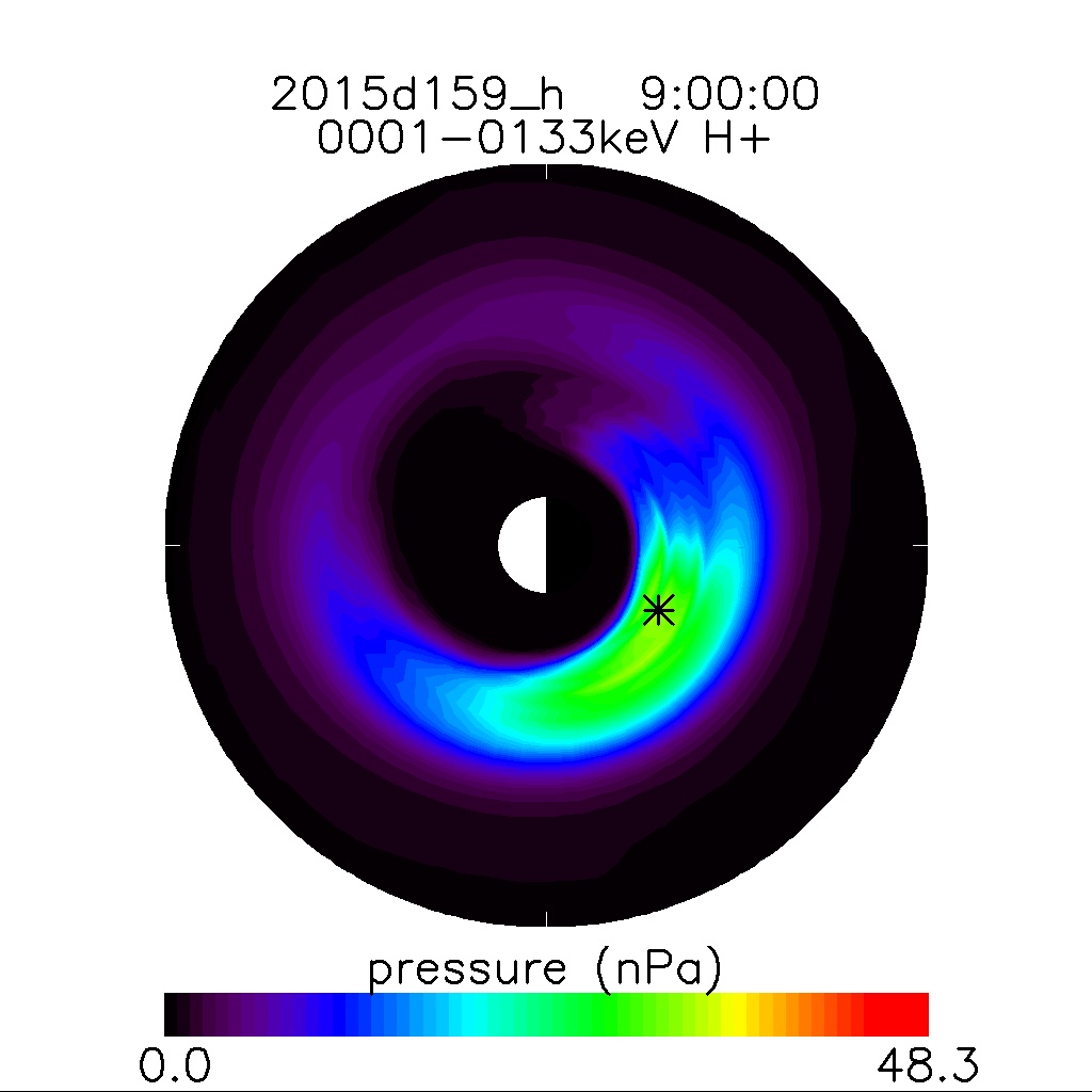 | Inverted H+ Equatorial Pressure and Pitch-Angle Anistropy | Inverted H+ Energy and Pitch-Angle Distribution at Pressure Peak | ||