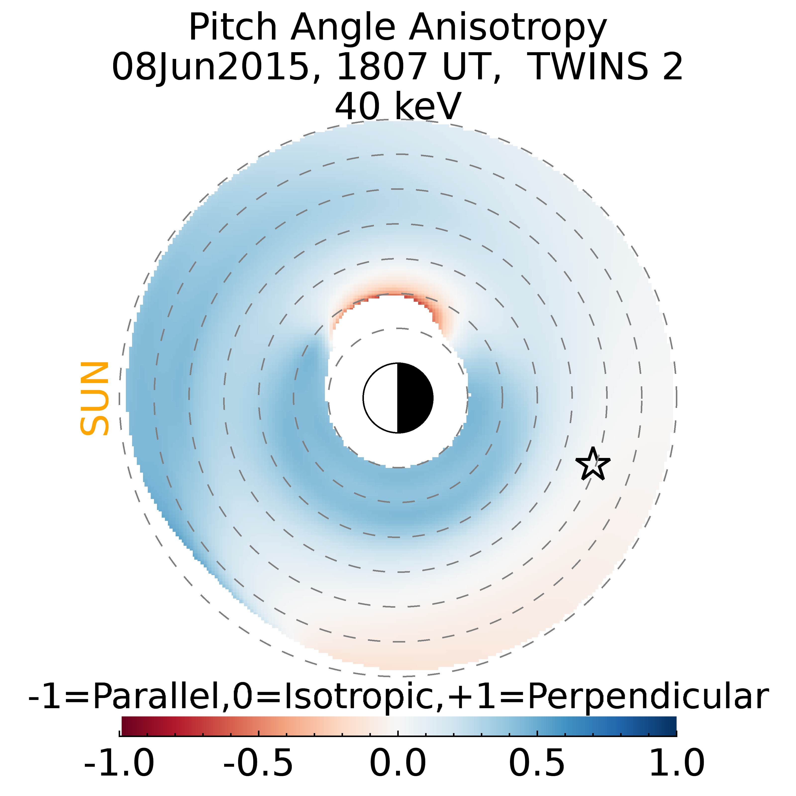 | TWINS ENA Images | Inverted H+ Flux and Pitch-Angle Distribution | ||