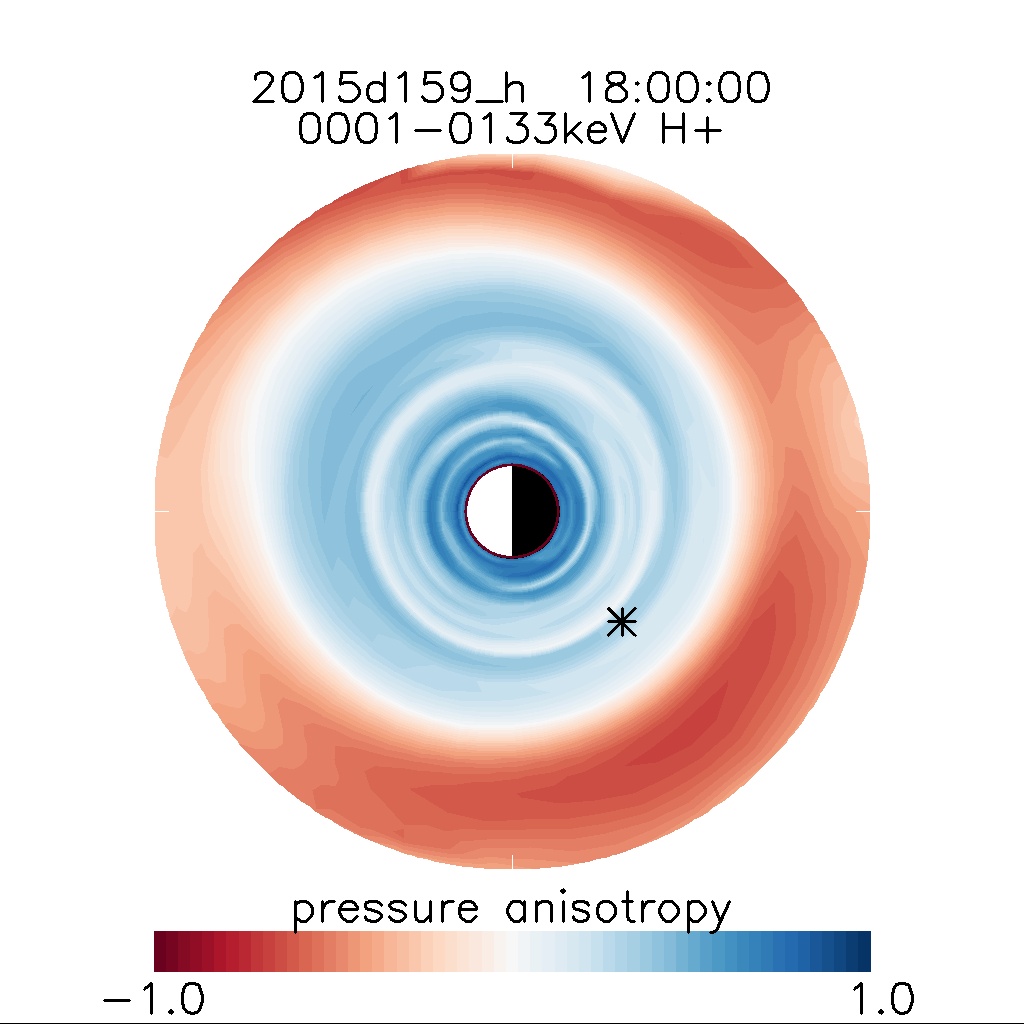 | Inverted H+ Equatorial Pressure and Pitch-Angle Anistropy | Inverted H+ Energy and Pitch-Angle Distribution at Pressure Peak | ||