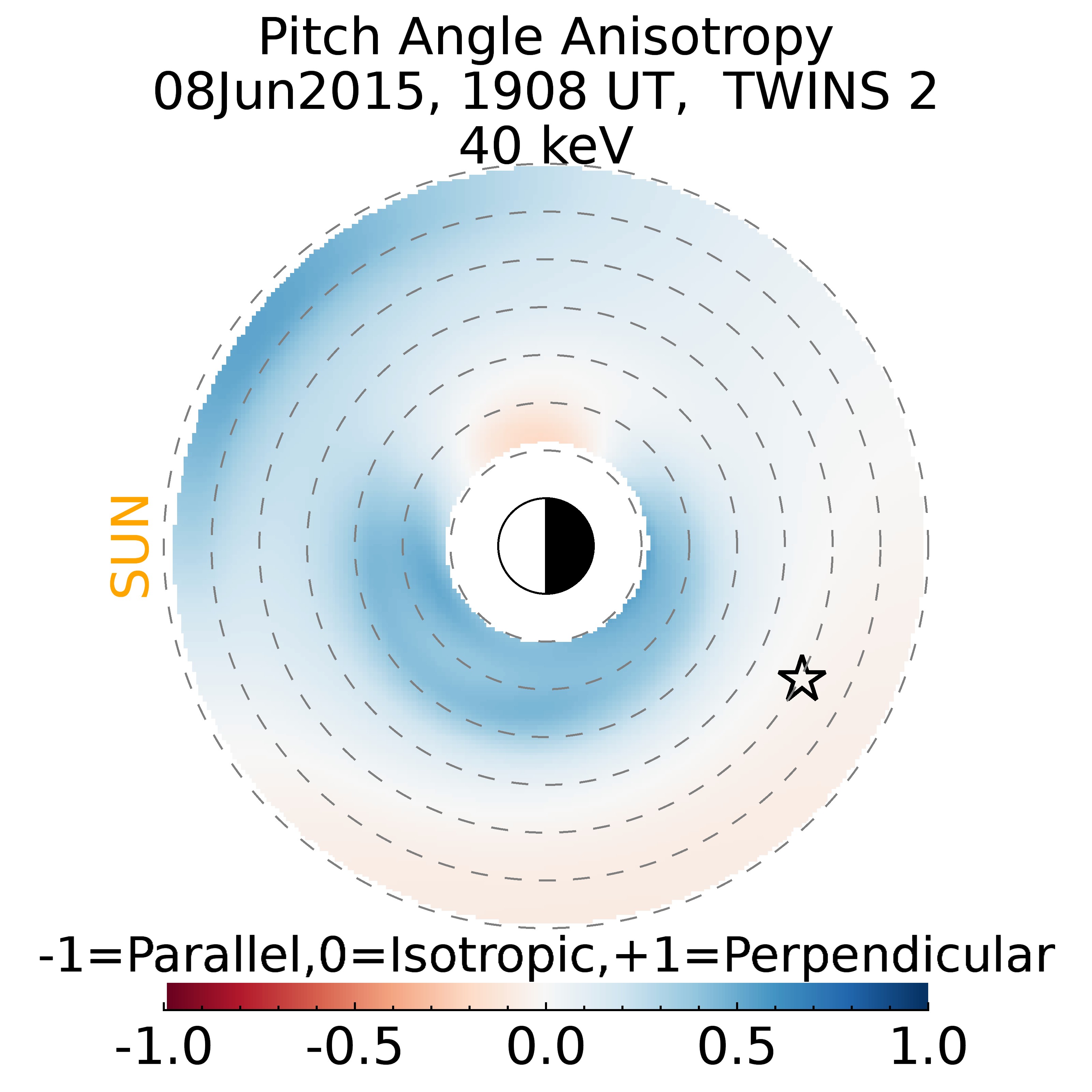 | TWINS ENA Images | Inverted H+ Flux and Pitch-Angle Distribution | ||