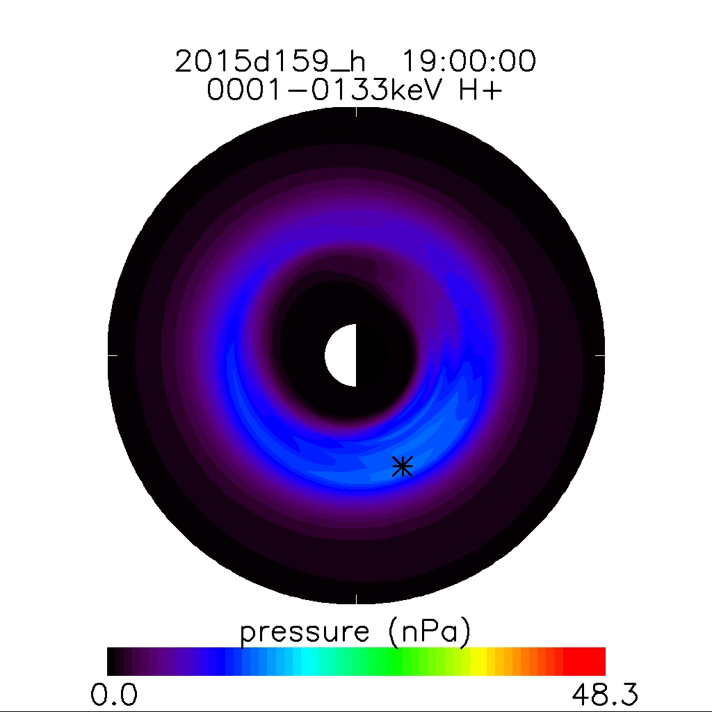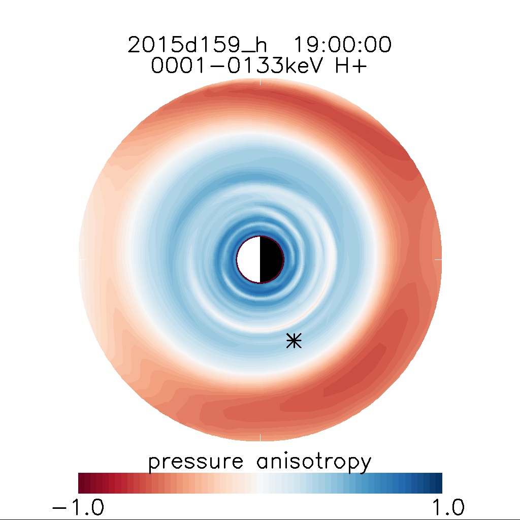| Inverted H+ Equatorial Pressure and Pitch-Angle Anistropy | Inverted H+ Energy and Pitch-Angle Distribution at Pressure Peak | ||